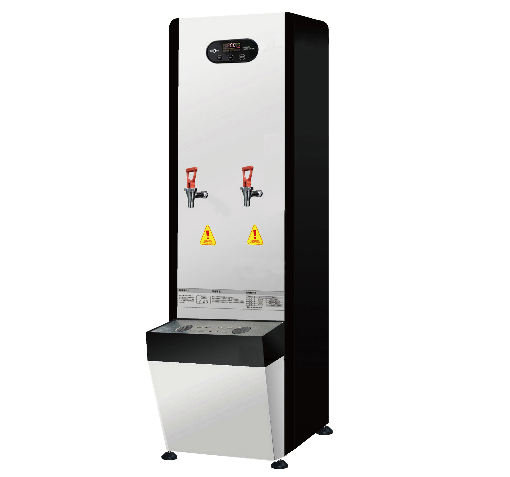 全新輕觸按鍵 液晶數字化顯示;8K鏡面與黑鈦結合,美觀(guān)大方;采用步進(jìn)原理,消除了陰陽(yáng)水混合水,千沸水;溫度自動(dòng)控制,無(wú)需調節;不進(jìn)水不工作,100%純開(kāi)水;微電腦控制;真防干燒、防漏電、防開(kāi)蓋、防亂設置、防蒸汽安全設計 。